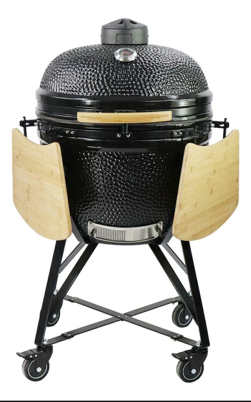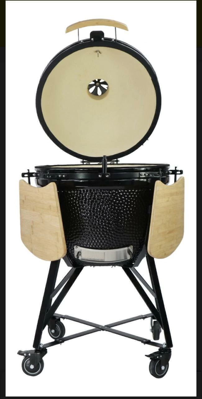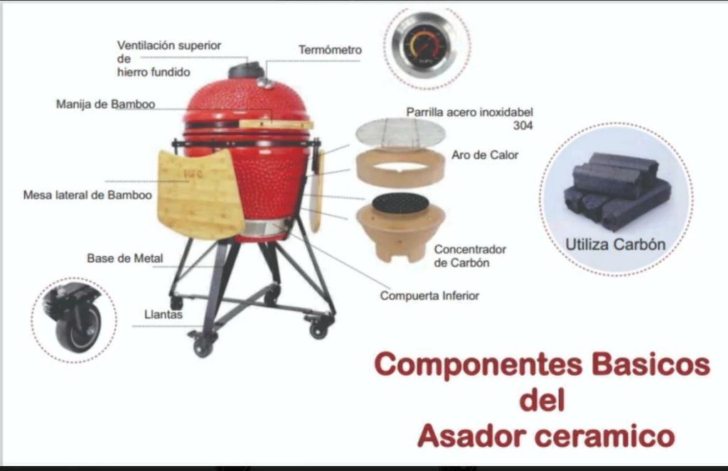 Este asador, horno, ahumador y parrilla de 25 pulgadas, está fabricado con cerámica de alta resistencia y calidad.Su diseño permite asar, ahumar, hornear y dorar con facilidad. Además, su movilidad es sencilla gracias a las ruedas giratorias.